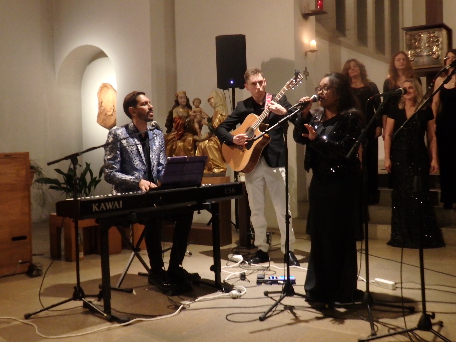Der Chor, der an die siebzig Mitglieder umfasst, trat diesem Konzert mit circa dreißig Sängerinnen und Sängern an, darunter mehrere Solistinnen und Solisten. Dirigent da Silva bestritt mit seiner kraftvollen, tragenden Stimme selbst einen großen Teil der Soli. Er begleitete das Ensemble auch am Synthesizer und ist Urheber der poppigen Eigenkompositionen, die im ersten Programmteil vorgetragen wurden. Silva ist darüber hinaus Musikpädagoge und war in seiner brasilianischen Heimat erfolgreich als Sozialarbeiter tätig. Das Engagement für menschliche Gemeinschaft spürte man auch in seiner sehr persönlichen und emotionalen Moderation. Ihm und der Soul Family, so sein Credo, sei es wichtig, mit dem Publikum „Gefühle auszutauschen“. Dies gelang dem Chor mit viel Groove, Rhythmus und ansteckender Dynamik. Schlag auf Schlag folgte ein heißer Hit auf den anderen.