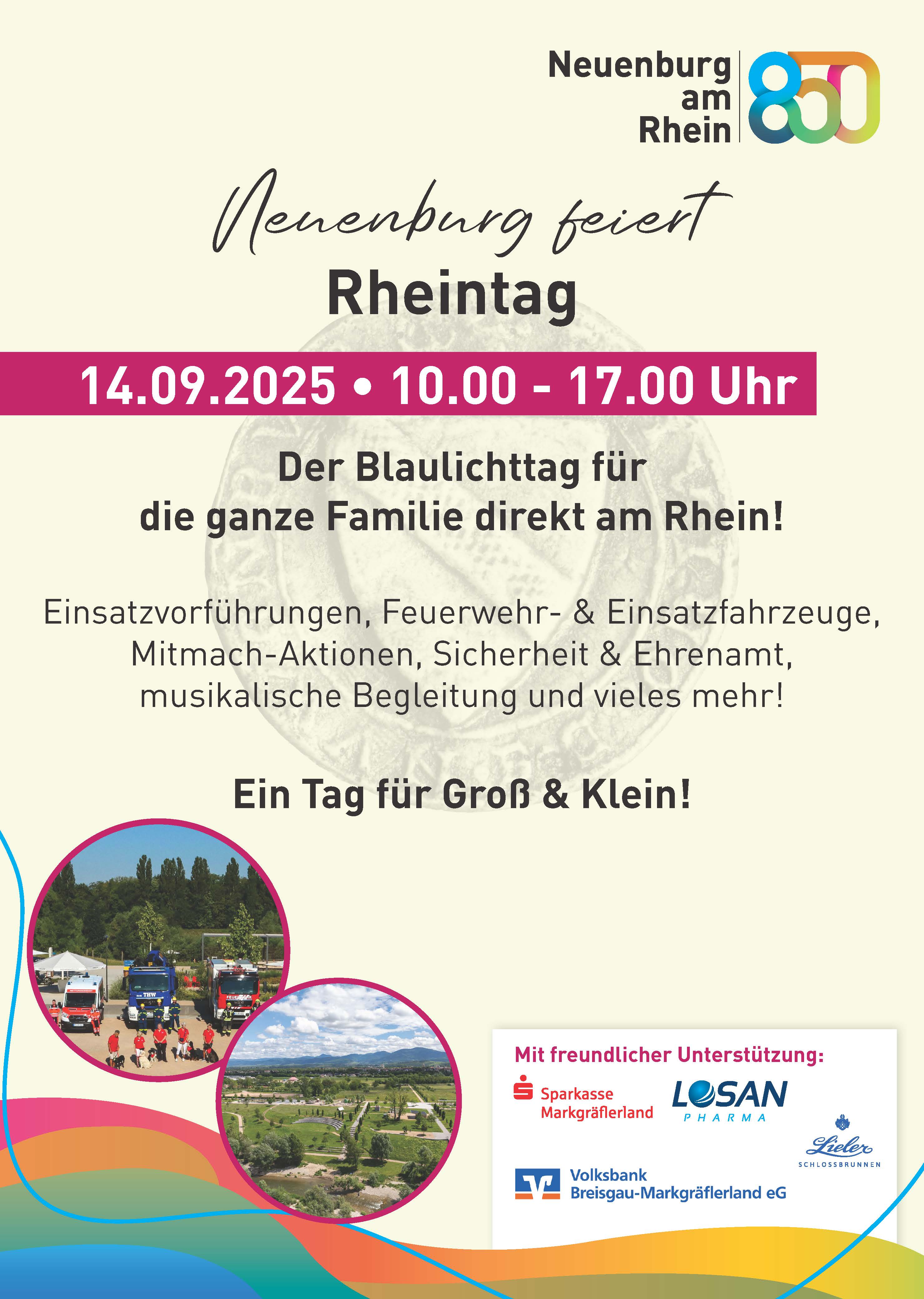 Der Rhein gehört zu Neuenburg. Das wird auch im Jubiläumsjahr deutlich. Eine der Highlight-Veranstaltungen im Jubiläumsjahr findet direkt am Rhein satt: der Blaulichttag.