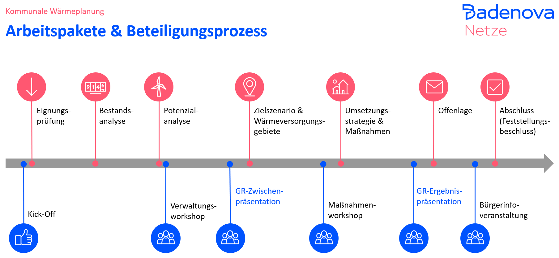 Begleitet werden diese Schritte durch ein Beteiligungs- und Kommunikationskonzept, um alle relevanten Akteure vor Ort sowie Bürgerinnen und Bürger in Neuenburg am Rhein zu informieren und zu beteiligen.