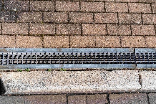 - Entwässerungs-Gullys haben einen gitterförmigen Deckel aus Gusseisen. Darunter befindet sich in der Regel ein Auffangbehälter, der Laub und andere größere Objekte zurückhält. Unter dem Auffangbehälter führt ein schräg verlaufendes Rohr in die Kanalisation. In diesen Gullys kann sich normalerweise kein Wasser sammeln.