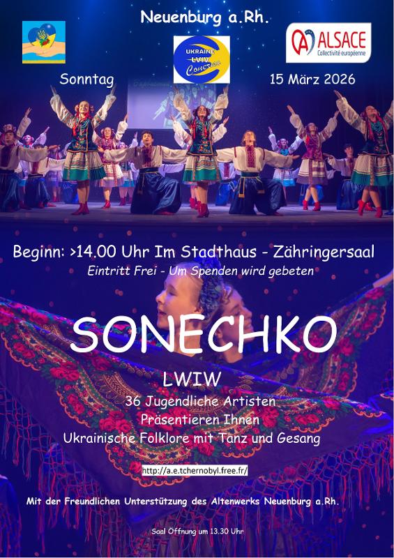 Nach langer Zwangspause sind junge Künstlerinnen und Künstler aus der Ukraine wieder zu Gast in unserer Nähe!Ausgebildet an renommierten Kunstschulen in Lviw (Lem-berg) bieten die Jugendlichen ein herrliches Programm mit Gesängen, traditionellen Tänzen und künstlerischen Einla-gen. Erfreuen Sie sich an den farbenfrohen Kostümen und zeigen Sie durch Ihren Besuch Ihr Interesse für das gestrafte Land, besonders für die Jugend!