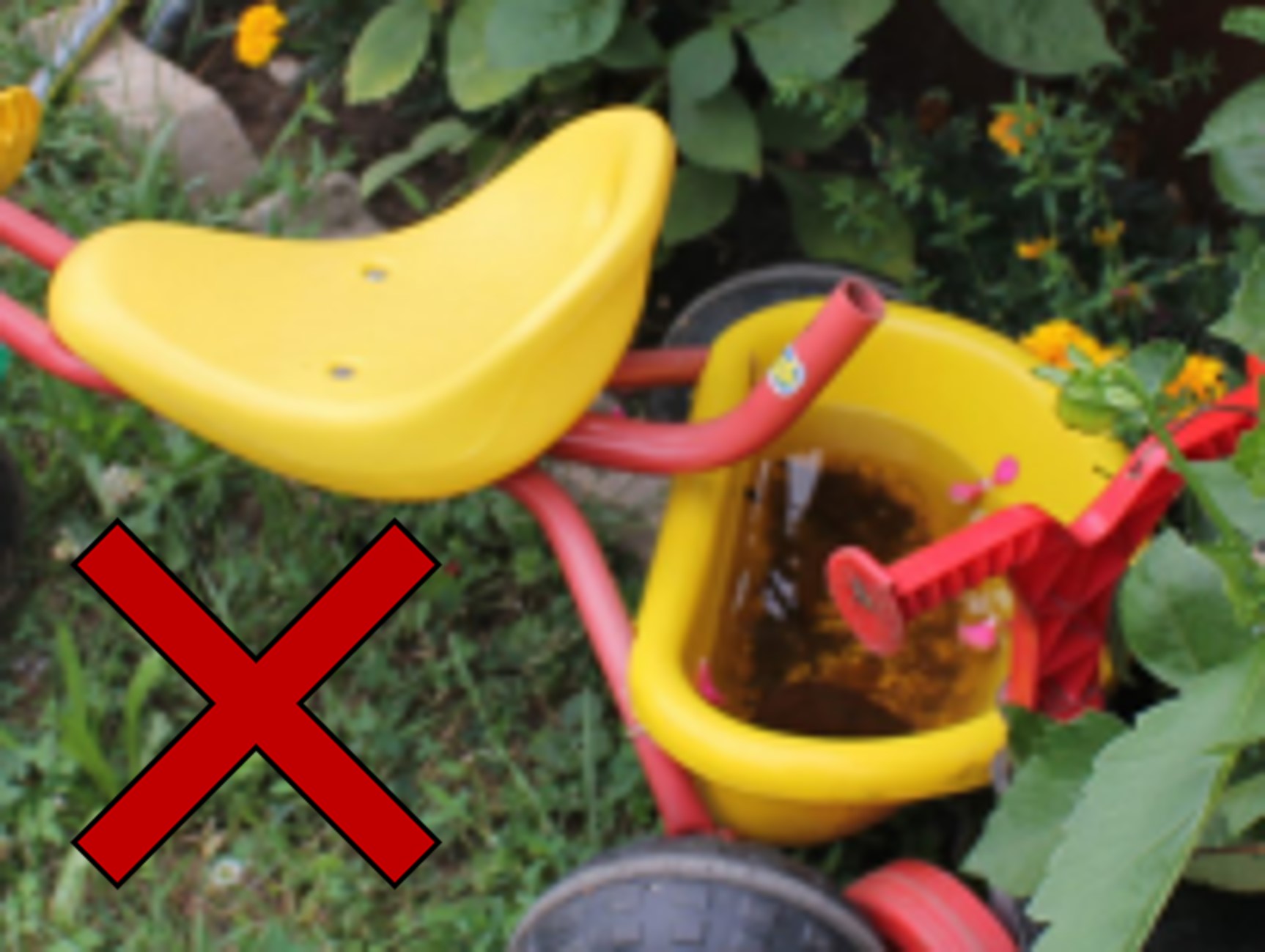 - Sandspielzeug wie Eimer oder Förmchen, Wasserbahnen, Schubkarren oder andere Spielfahrzeuge nicht für längere Zeit im Freien stehen lassen. Wasser sammelt sich in jeder kleinen Vertiefung und wird von den Tigermücken als Brutstätte genutzt.