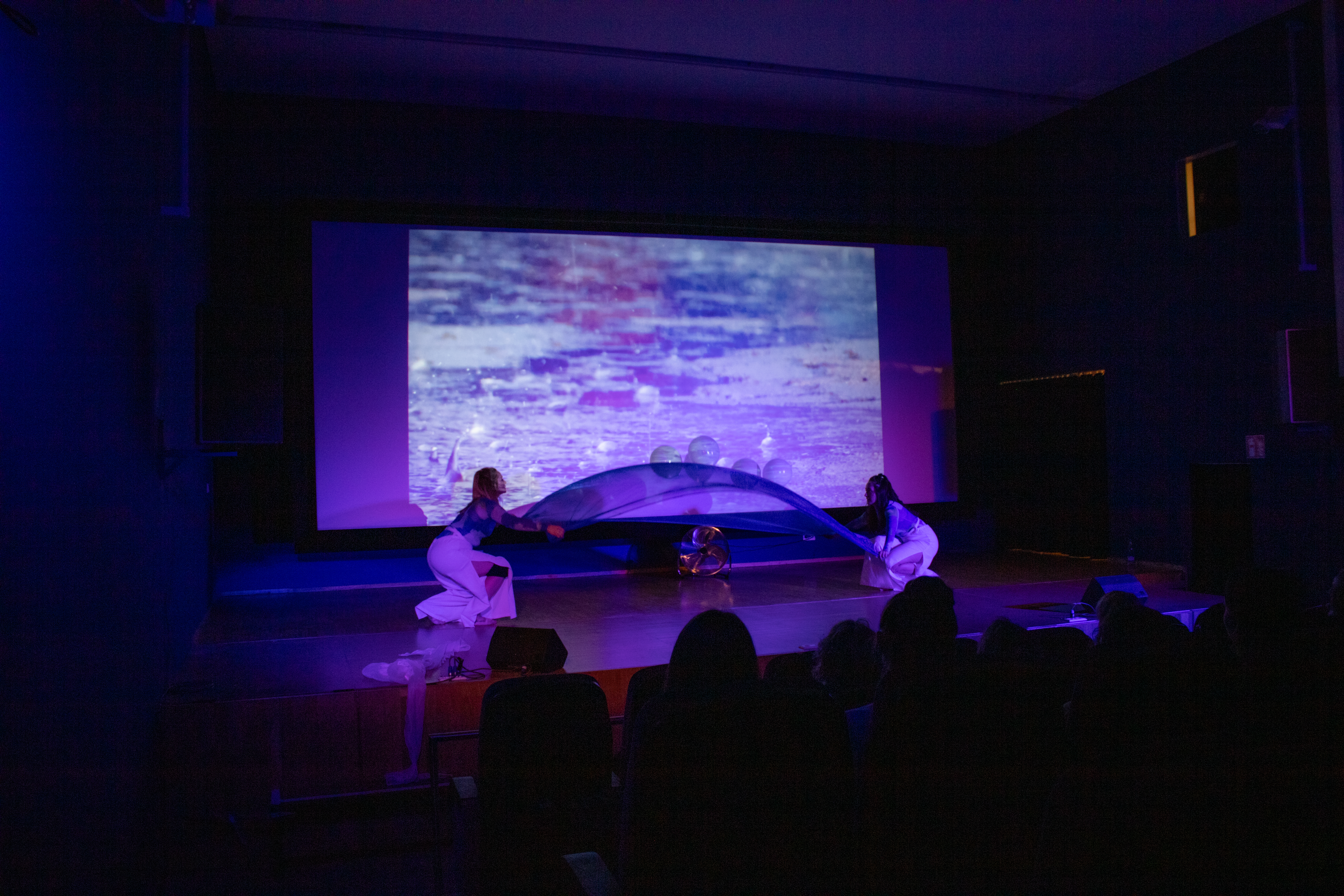 Was bewegt uns? Diese Frage stellten sich die beiden Tänzerinnen Lena Sayer und Selina Proschke zur vergangenen KULTURzeit unter dem Titel „eLementS“ am 23. Oktober 2024 im Kino im Stadthaus. Zu den vier Elementen Luft, Wasser, Erde und Feuer inszenierten die beiden Tänzerinnen in zwei Akten verschiedene Choreographien, die von deren Gedankengängen, von Fragen und Anregungen sowie von einzelnen Videosequenzen begleitet wurden.