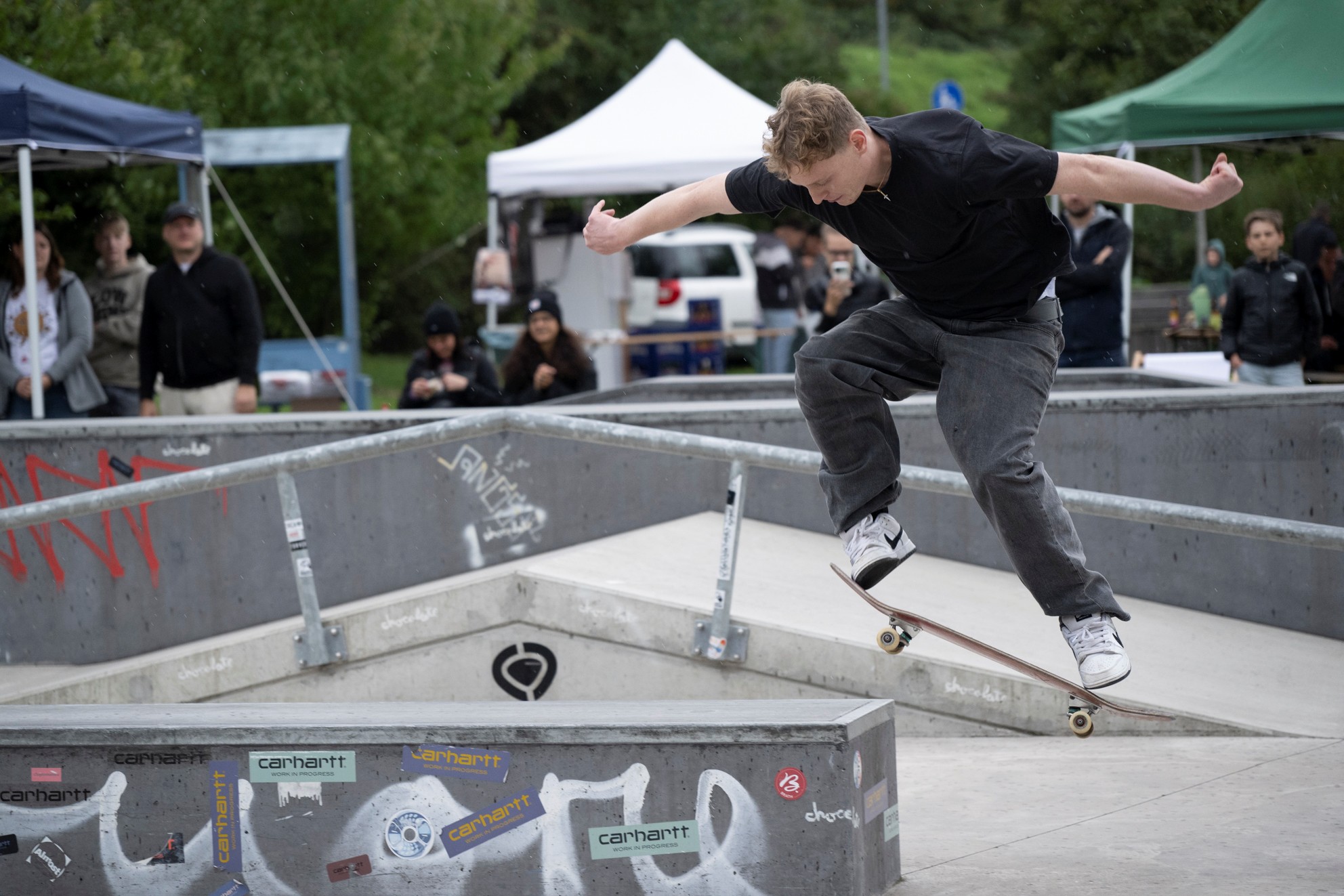 Groß war auch die Zahl der Zuschauer, die das Spektakel verfolgten. Gleich zwei Disziplinen bot die städtische Jugendarbeit an. Die einen zeigten ihr Können im Bereich „Street“, andere maßen sich in der Disziplin „Best Trick“. Die Skater wurden kräftig vom Publikum angefeuert, gejubelt wurde bei spektakulären Szenen, als die Skater mit Luftsprüngen und Gleiten über Hindernisse das professionelle Handling ihrer Skateboards vorführten. Als der erste Durchgang weitgehend abgeschossen, setzte der Regen ein, ein Weiterfahren war aus Sicherheitsgründen nicht mehr möglich. „Das war wirklich schade“, teilte später der neue Jugendreferent der Stadt, Raphael Kunz, mit. Am Ende entschieden er und das Organisationsteam den Contest im kommenden Frühsommer zu wiederholen. Was bleibt ist eine spektakuläre Show der Neuenburger Skater, an der das Publikum bis zum einsetzenden Regen viel Freude hatten.