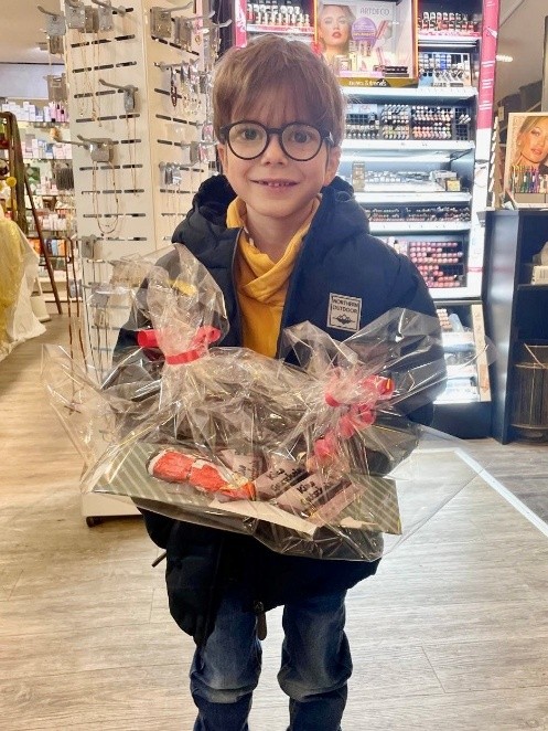 Beim Abgeben der Teilnahmekarten gab es bereits eine schokoladige Belohnung für jeden der Teilnehmer und ein paar Tage vor Weihnachten wurden die drei Gewinner gezogen. Mit dem richtigen Lösungswort LEBKUCHENHAUS konnten sich Nelio, Lena und Leno über Kinofreikarten für die ganze Familie freuen.