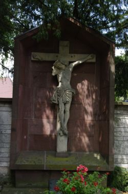 Bedeutendes Spätgotisches Steinkruzifix. Es überstandt beschädigt die Zerstörung durch den Zweiten Weltkrieg und mahnt zum Frieden.