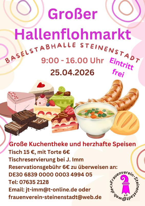 Jetzt Tische reservieren! 07635 2128 oder email: jt-imm@t-online.de oder frauenverein-steinenstadt@web.de Reservationsgebühr pro Tisch € 6.-, zu überweisen auf Konto: DE30 6839 0000 0003 4994 05.